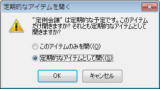 下記メッセージに対し「定期的なアイテムとして開く」を選択して「OK」をクリック