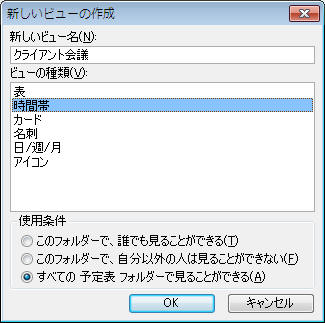 ビューの種類を選択し、ビュー名を入力して「OK」をクリック