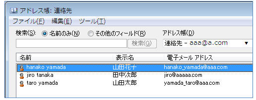 アドレス帳から任意のアドレスをダブルクリック