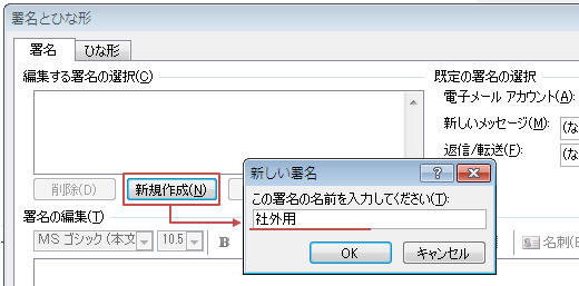 「新規作成」をクリックし「署名の名前」を入力して「OK」をクリック