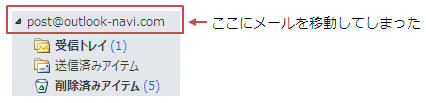 メールボックスの最上位であるOutlook Today(またはaaa@aaa.comなどと表記されたフォルダ)にメールを移動してしまった場合の取り出し方です。