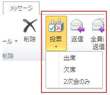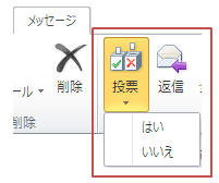 メールの受信者は「メッセージ」タブにある「投票▼」をクリックして「はい」「いいえ」などを選択します。