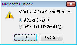 Outlookではメールに「はい」「いいえ」「承認」「却下」などのボタンを付けて送信することができます。