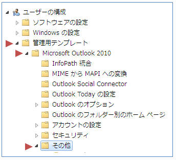 グループポリシーエディタで「ユーザーの構成」−「管理用テンプレート」−「Microsoft