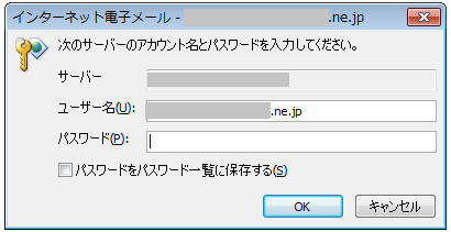 → パスワードが保存される設定になっていないため「送受信」が実行される度に表示されています。 次の設定を行います。