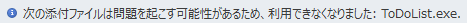 次の添付ファイルは問題を起こす可能性があるため、利用できなくなりました : <ファイル名>