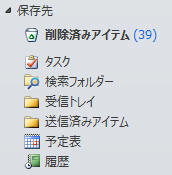 Outlook画面左のフォルダ一覧に表示される「保存先」フォルダまたは「保存フォルダ」に自動整理されたアイテムが格納されます。(※元のフォルダと同じ名前のフォルダに格納)