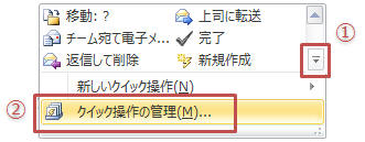 「クイック操作」の「その他」ボタンをクリックし「クイック操作の管理」をクリック