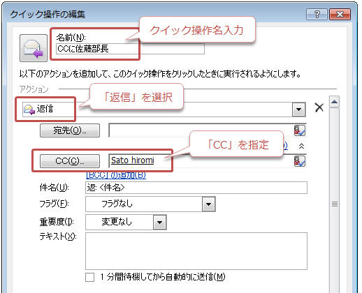 クイック操作の名前を入力