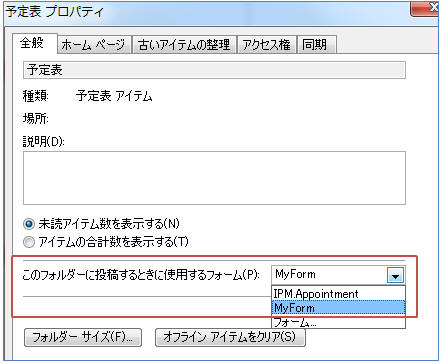 以上で分類項目が割り当てられたフォームが発行されました。これを予定表フォルダの既定のフォームにします。