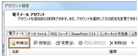 「新しい電子メールアカウントの追加」ダイアログで以下のように入力します。