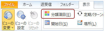 【表示】タブ−「分類項目」をクリック
