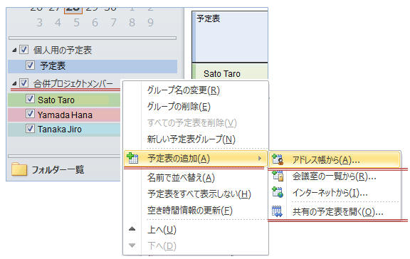 共有に は「ナビゲーションウィンドウに共有予定表を作成する方法(グループスケジュール)」「メールボックス一覧に他ユーザーの予定表フォルダを追加する方法」の2通りの方法があります。 それぞれについて操作方法とポイントを詳しくご紹介します。