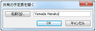 「共有の予定表を開く」ダイアログで他ユーザーの名前を入力し、「OK」をクリック