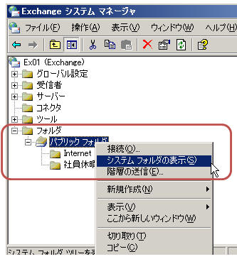 「スタート」−「すべてのプログラム」−「Microsoft Exchange」−「システムマネージャ」をクリック