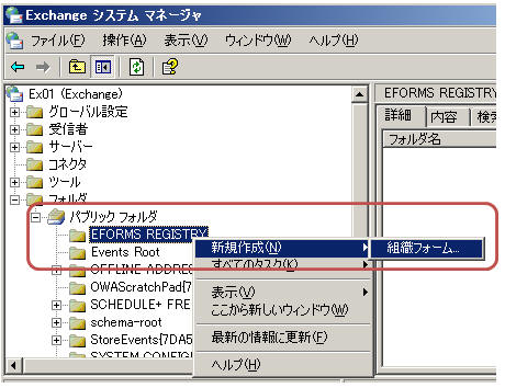 組織フォームライブラリを作成するには(例:Exchange Server2003)