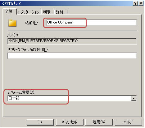組織フォームのフォルダ名を入力しフォームの言語(日本語)を選択し「OK」をクリック