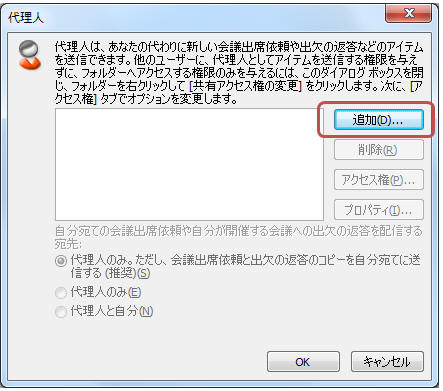 「追加」をクリックし、代理人を指定して「OK」をクリック