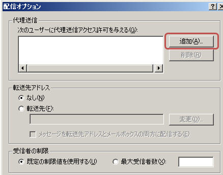 「代理送信」枠の「追加」をクリックし、代理人を指定して「OK」をクリック