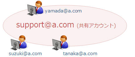 例:各ユーザーはそれぞれ自分のアドレスを持っていますが、外部サポート時には全員が同じアドレスで送受信を行います。