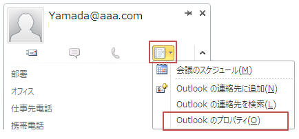 オプションボタンをクリックし「Outlookのプロパティ」をクリック