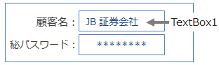 例:下記のようにパスワードが設定されている場合は、「顧客名」が入力されたボックス(TextBox1)は非表示にします。